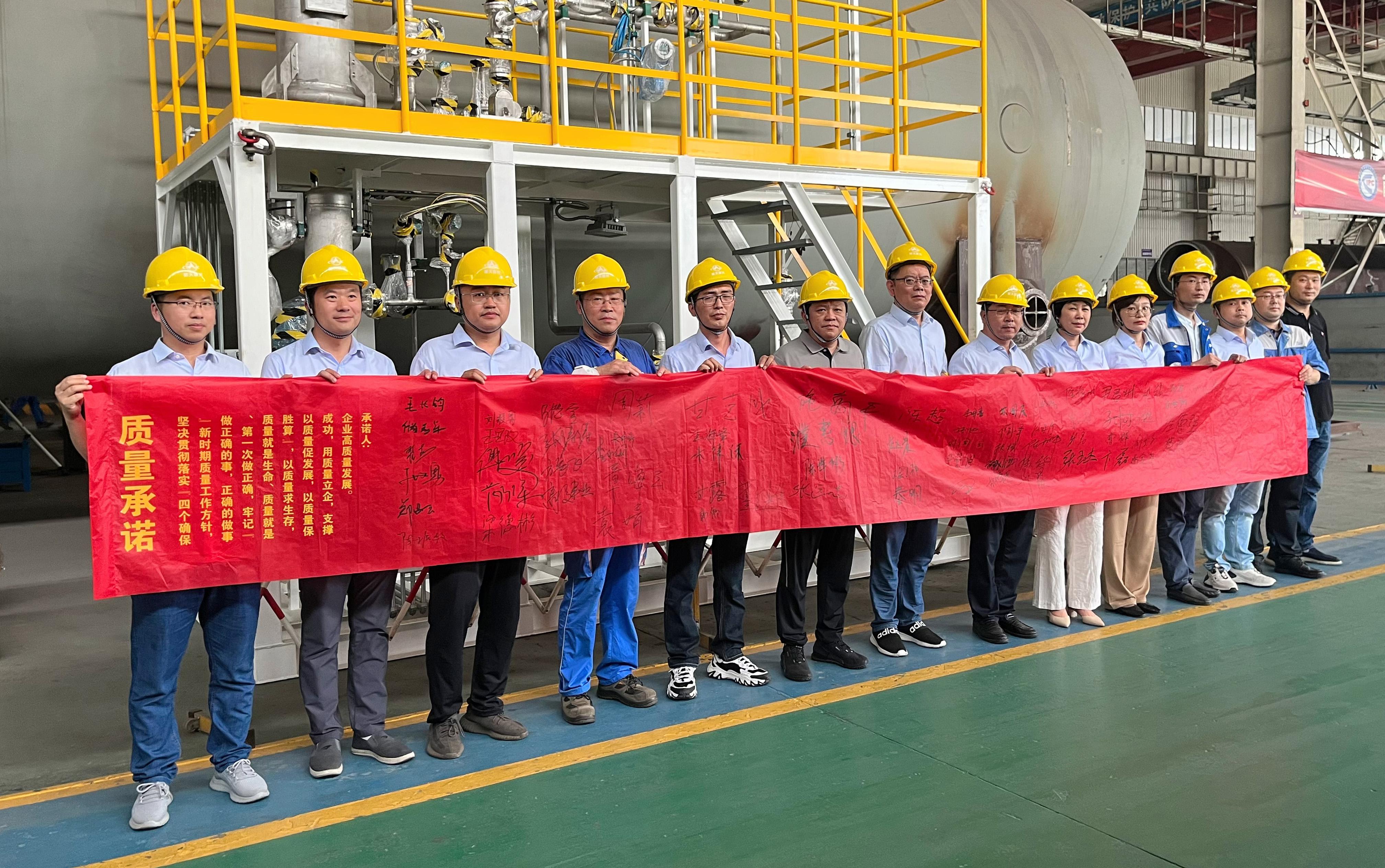 千人來簽名,質量我承諾,公司組織開展千人質量承諾活動,倡議全體職工“人人關心質量、人人重視質量、人人追求質量”,并向相關方和公司做出鄭重承諾。質檢中心編印發放《質檢中心工作指導手冊》,各派駐檢驗組紛紛在宣傳橫幅上留名,做出“牢記職責使命、堅守職業操守、敬畏產品質量”的莊嚴承諾。防務中心、化機分公司、上海分公司、晨光東螺、晨光森田等單位主要領導帶頭,在質量承諾條幅上鄭重簽字承諾,不忘承諾和初心,牢記自己的質量責任。