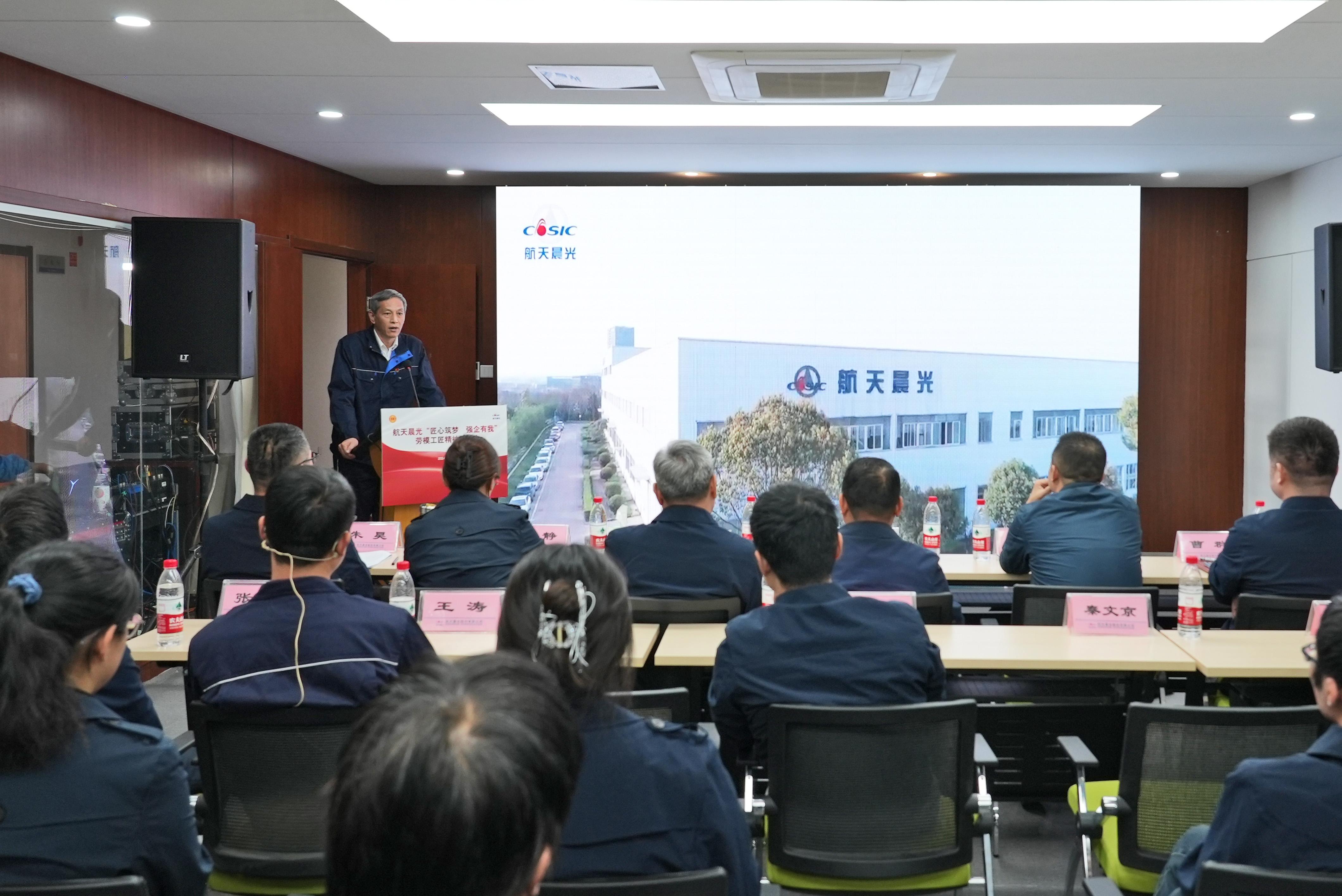 魏志剛代表公司工會(huì)為本次勞模工匠精神宣講活動(dòng)致辭,希望廣大一線職工在高質(zhì)量發(fā)展的新征程中,能夠向上創(chuàng)新、勇于開(kāi)拓,努力鉆研自身領(lǐng)域新知識(shí)、新技能,打破“出大力、流大汗”的刻板印象,積極向“知識(shí)型、技能型、創(chuàng)新型”高技能人才轉(zhuǎn)變,在守正創(chuàng)新中點(diǎn)亮勞動(dòng)精神;能夠向下深耕、主動(dòng)學(xué)習(xí),勤于思、踐于行,不斷提高專(zhuān)業(yè)知識(shí)儲(chǔ)備,做到干一行、愛(ài)一行、鉆一行,將“書(shū)中知識(shí)”轉(zhuǎn)化為“手上本領(lǐng)”,在學(xué)以致用中點(diǎn)亮勞模工匠精神;能夠向前突破、迎難而上,要敢挑“千斤擔(dān)”、敢啃“硬骨頭”,主動(dòng)在急難險(xiǎn)重的任務(wù)上長(zhǎng)才干、壯筋骨,越是艱險(xiǎn)越向前,在敢闖敢干中點(diǎn)亮航天精神,共同唱響新時(shí)代“咱們工人有力量”,為公司高質(zhì)量發(fā)展注入新活力、增添強(qiáng)動(dòng)力。